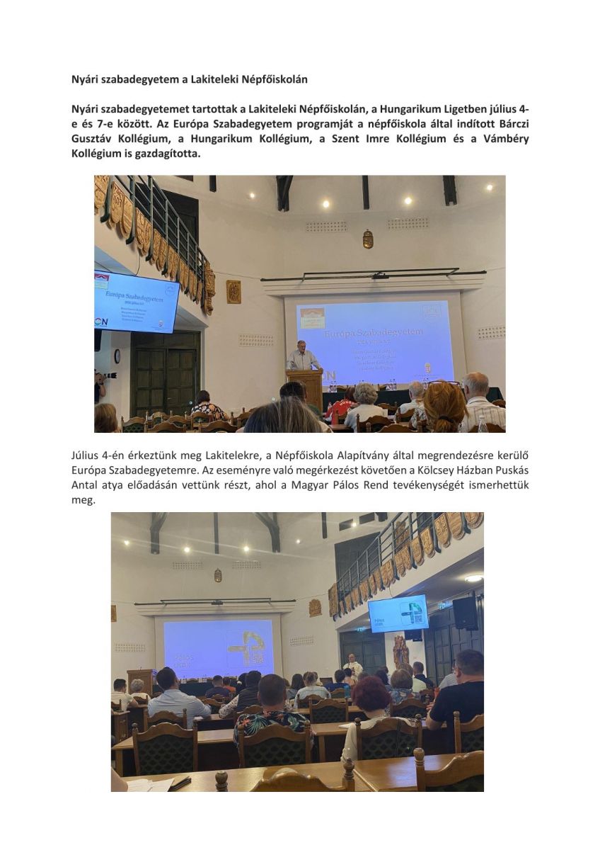 Nyári szabadegyetem a Lakiteleki Népfőiskolán