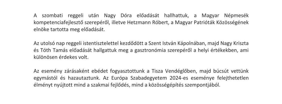 További információért látogassanak el a királyszállási Nagy-Magyarország Park Nonprofit Kft. - Összetartozás Népfőiskola weboldalára.
