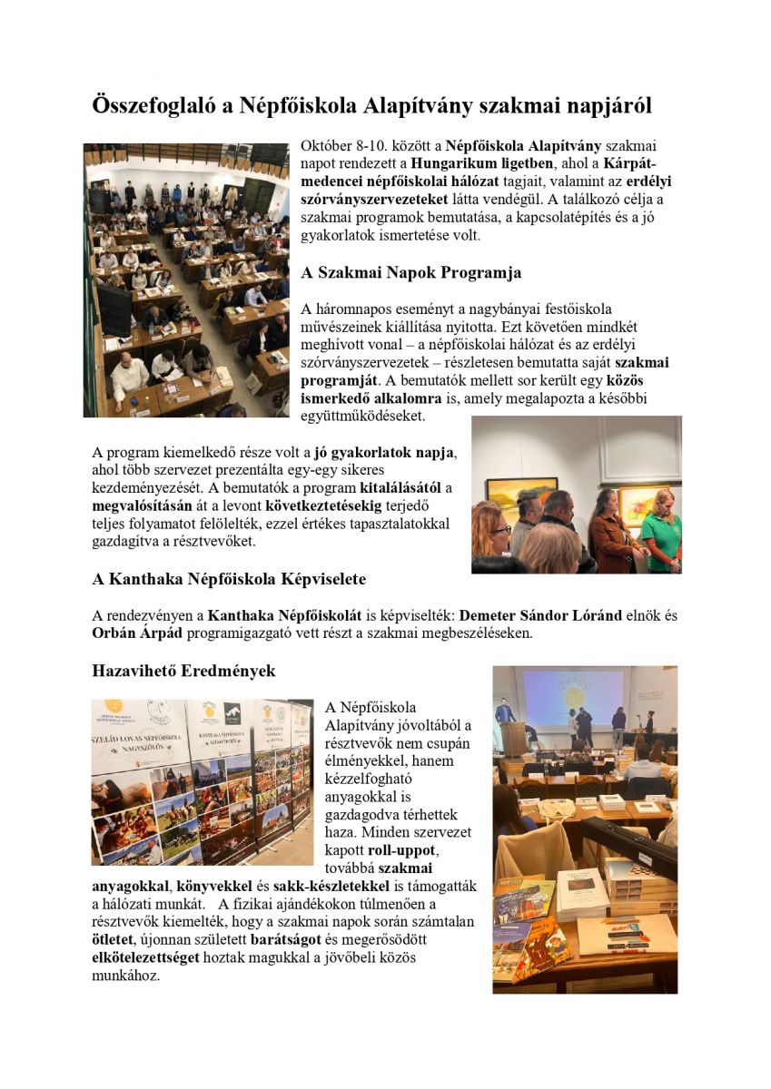 Összefoglaló a Népfőiskola Alapítvány szakmai napjáról