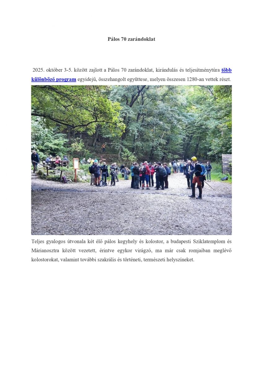 Pálos 70 zarándoklat