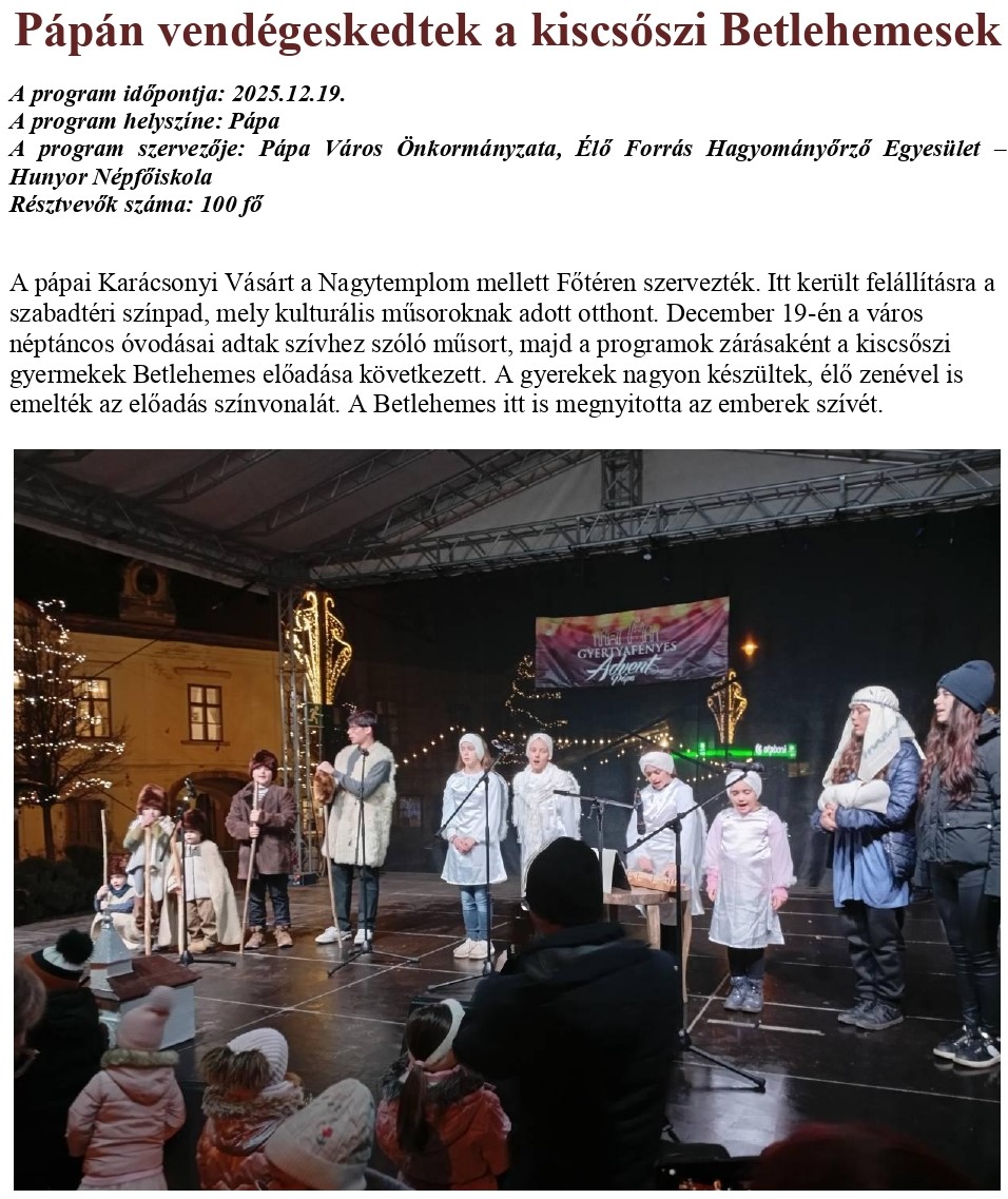 Pápán vendégeskedtek a kiscsőszi Betlehemesek