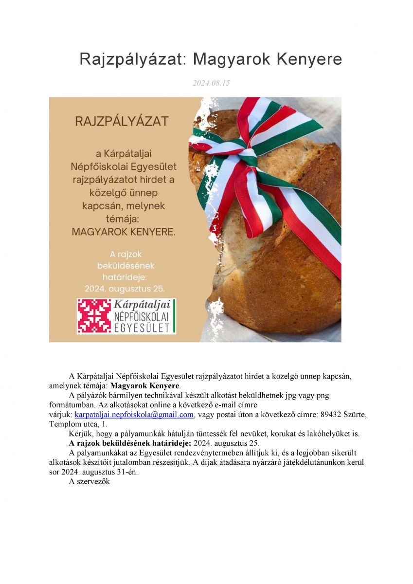 Rajzpályázat: Magyarok Kenyere
