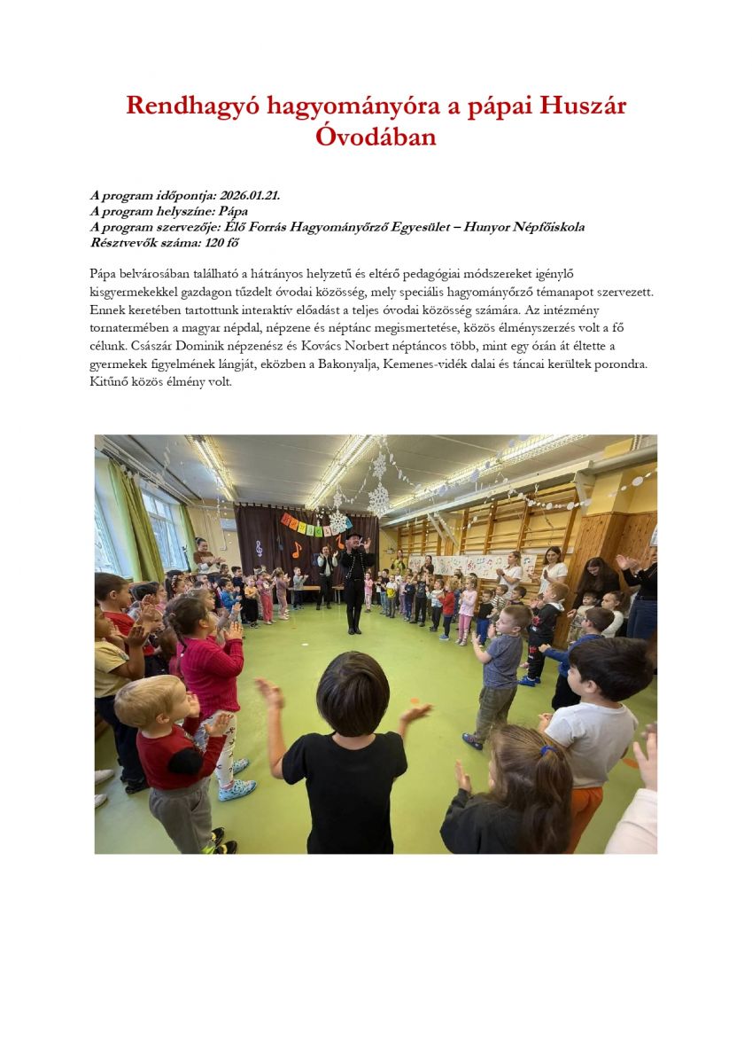 Rendhagyó hagyományóra a pápai Huszár Óvodában
