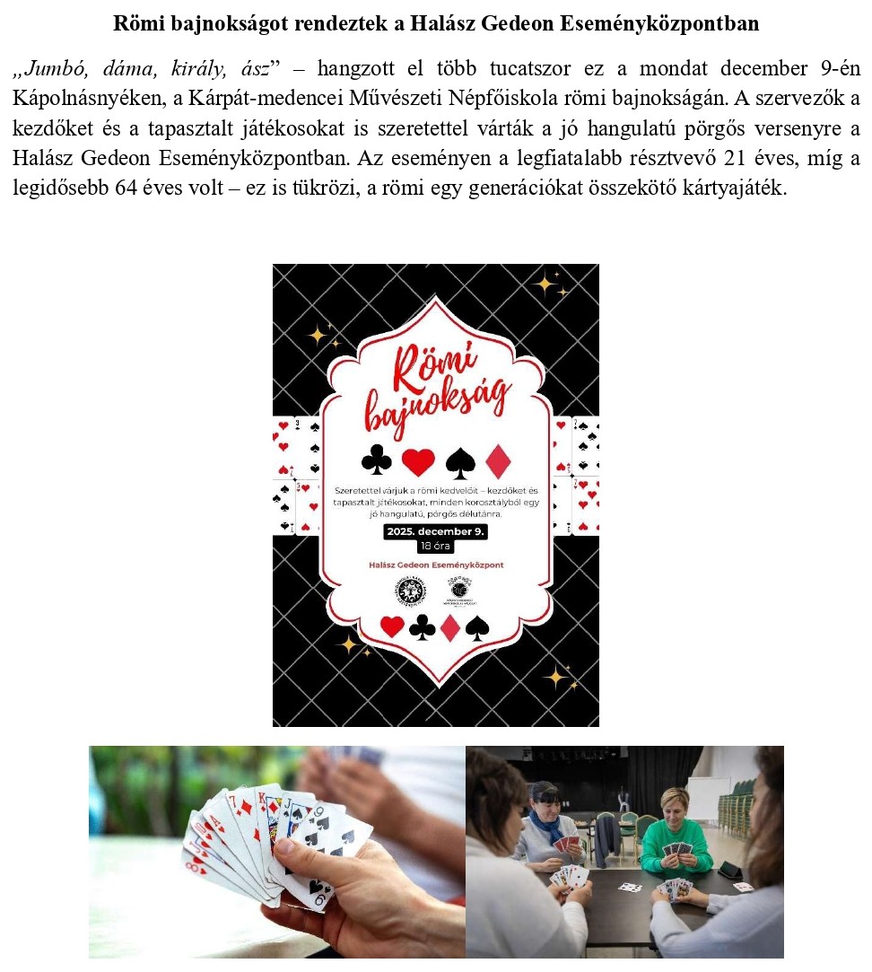 Römi bajnokságot rendeztek a Halász Gedeon Eseményközpontban
