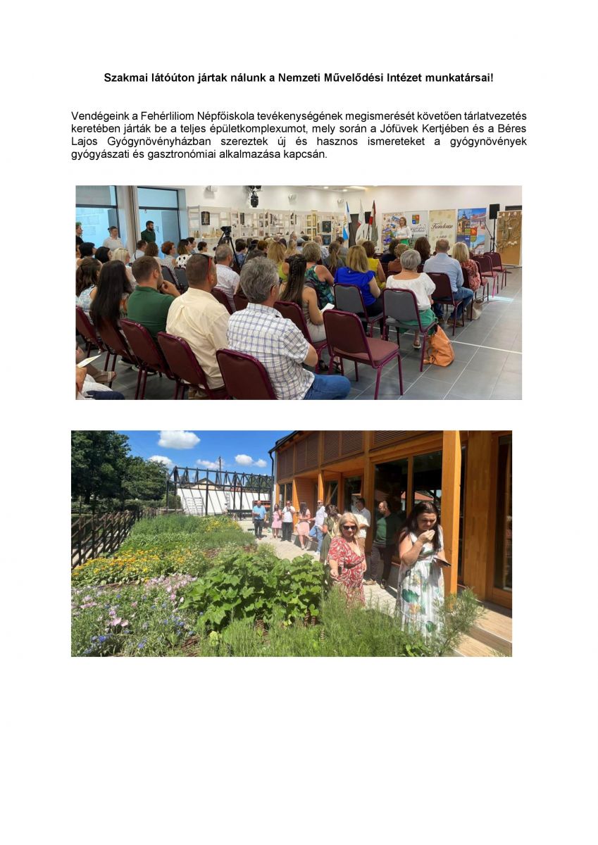 További információért látogassanak el a Nemzeti Művelődési Intézet NKKft. - Fehérliliom Népfőiskola weboldalára.
