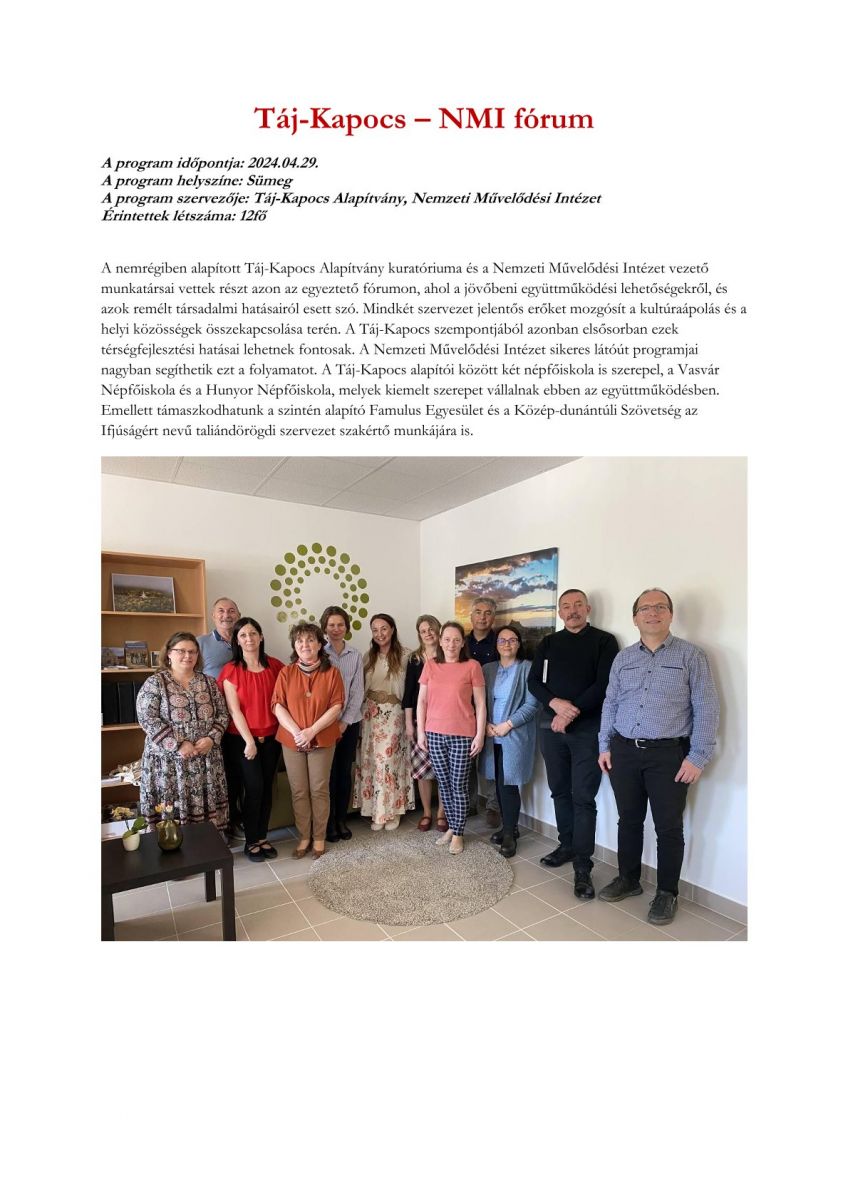 Táj-Kapocs - NMI együttműködés