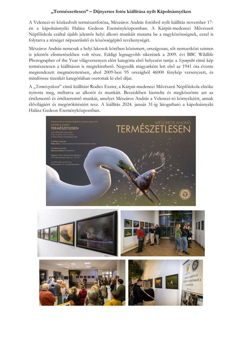 „Természetlesen” – Díjnyertes fotós kiállítása nyílt Kápolnásnyéken