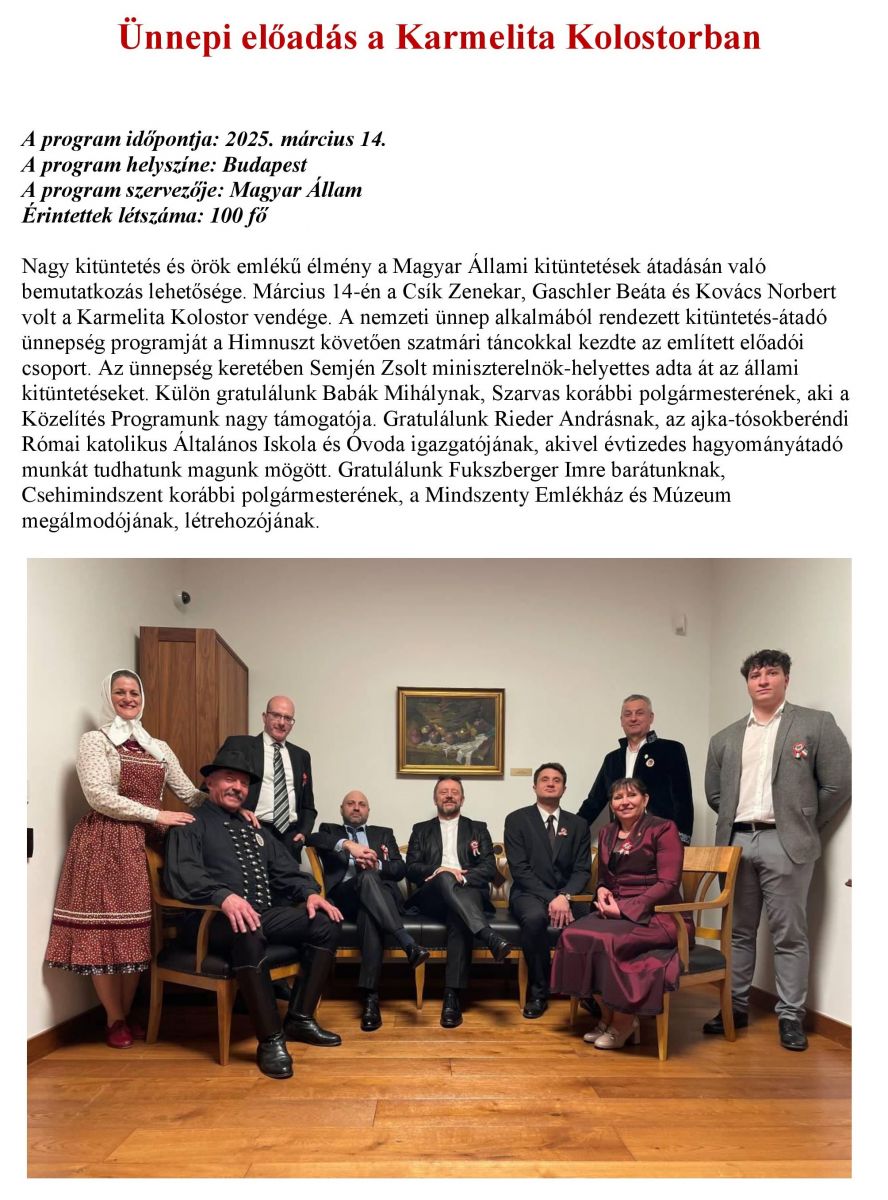 Ünnepi előadás a Karmelita Kolostorban