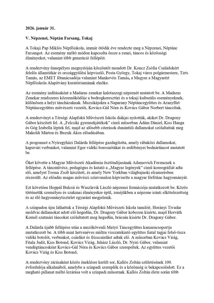 V. Népzenei, Néptánc Farsang