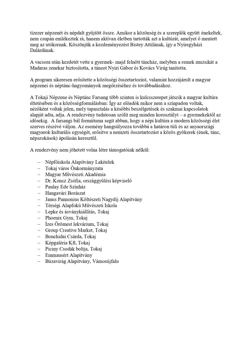 További információért látogassanak el a Magyar a Magyarért Alapítvány - Tokaji Pap Miklós Népfőiskola honlapjára.