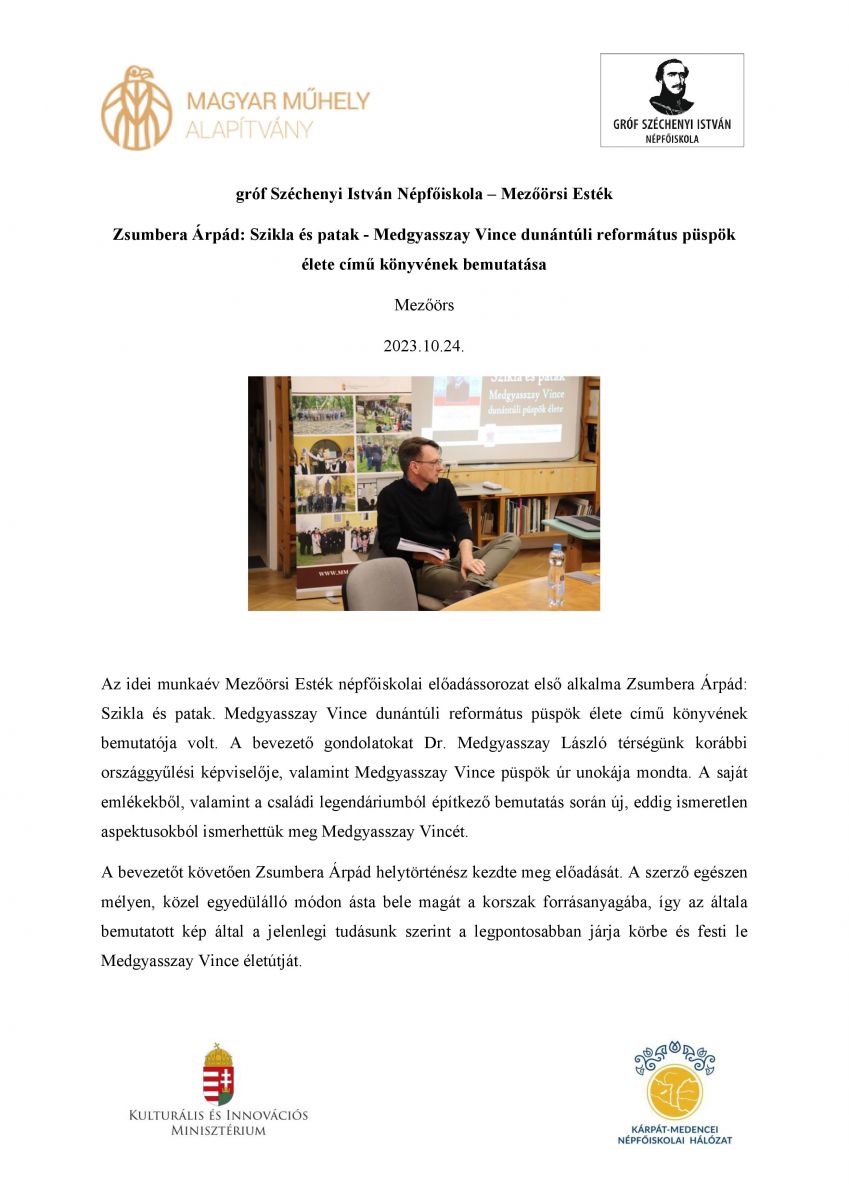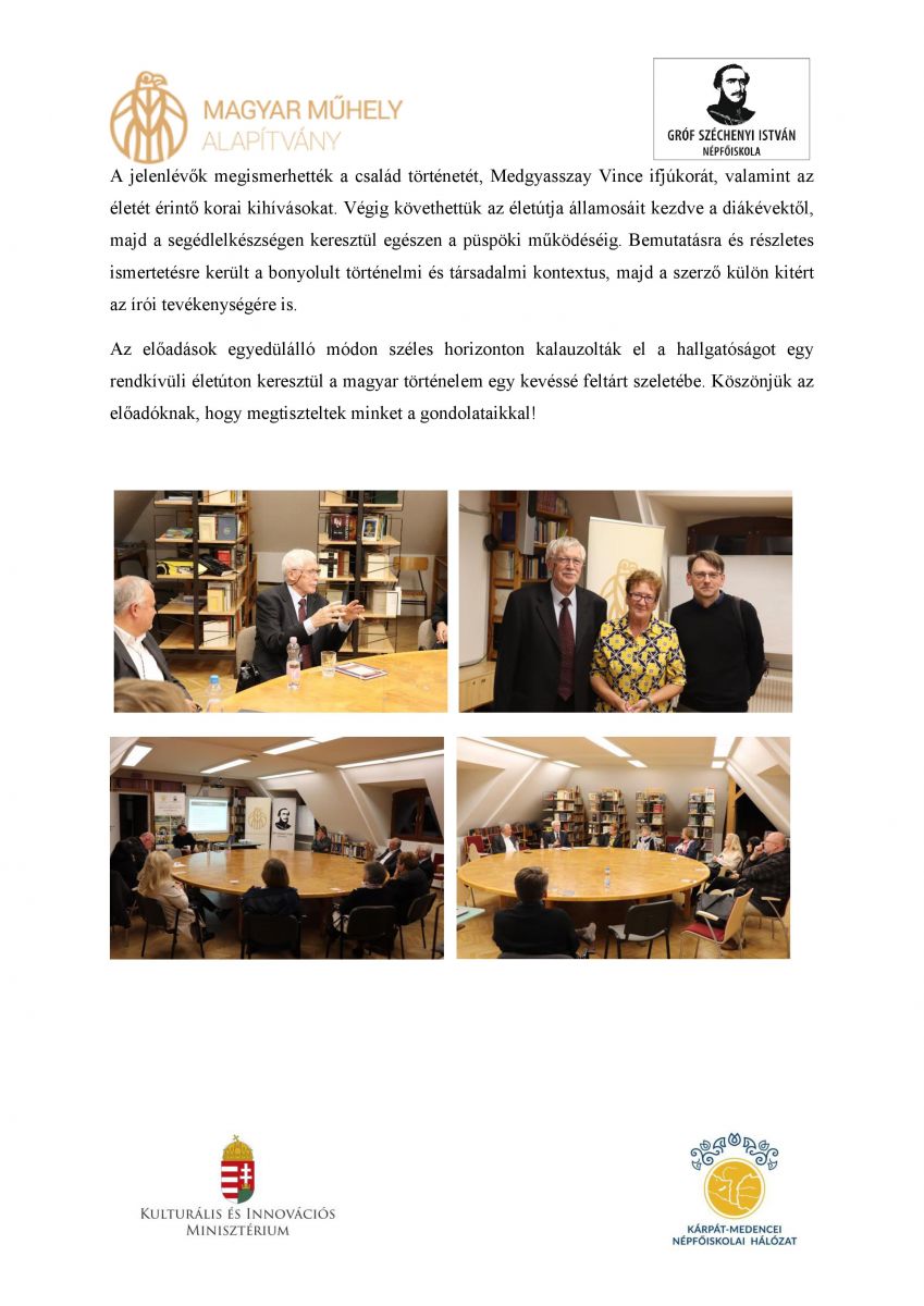 További információért látogassanak el a mezőörsi Magyar Műhely Közhasznú Alapítvány - gr. Széchenyi István Népfőiskola honlapjára.